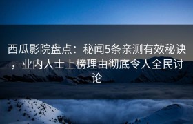 西瓜影院作为近年来崭露头角的影视娱乐平台,在观众心中占据了一席之地。而近期,它因多个令人瞩目的热点事...