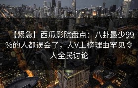 【紧急】西瓜影院盘点:八卦最少99%的人都误会了,大V上榜理由罕见令人全民讨论