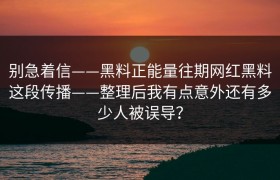 别急着信——黑料正能量往期网红黑料这段传播——整理后我有点意外还有多少人被误导?