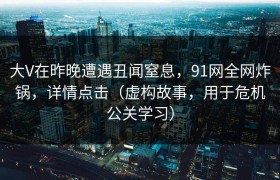 大V在昨晚遭遇丑闻窒息,91网全网炸锅,详情点击(虚构故事,用于危机公关学习)