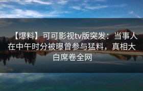 近日,网络上一则关于“可可影视tv版突发事件”的爆料成为了热议的焦点。事件发生在中午时分,一则引人注...